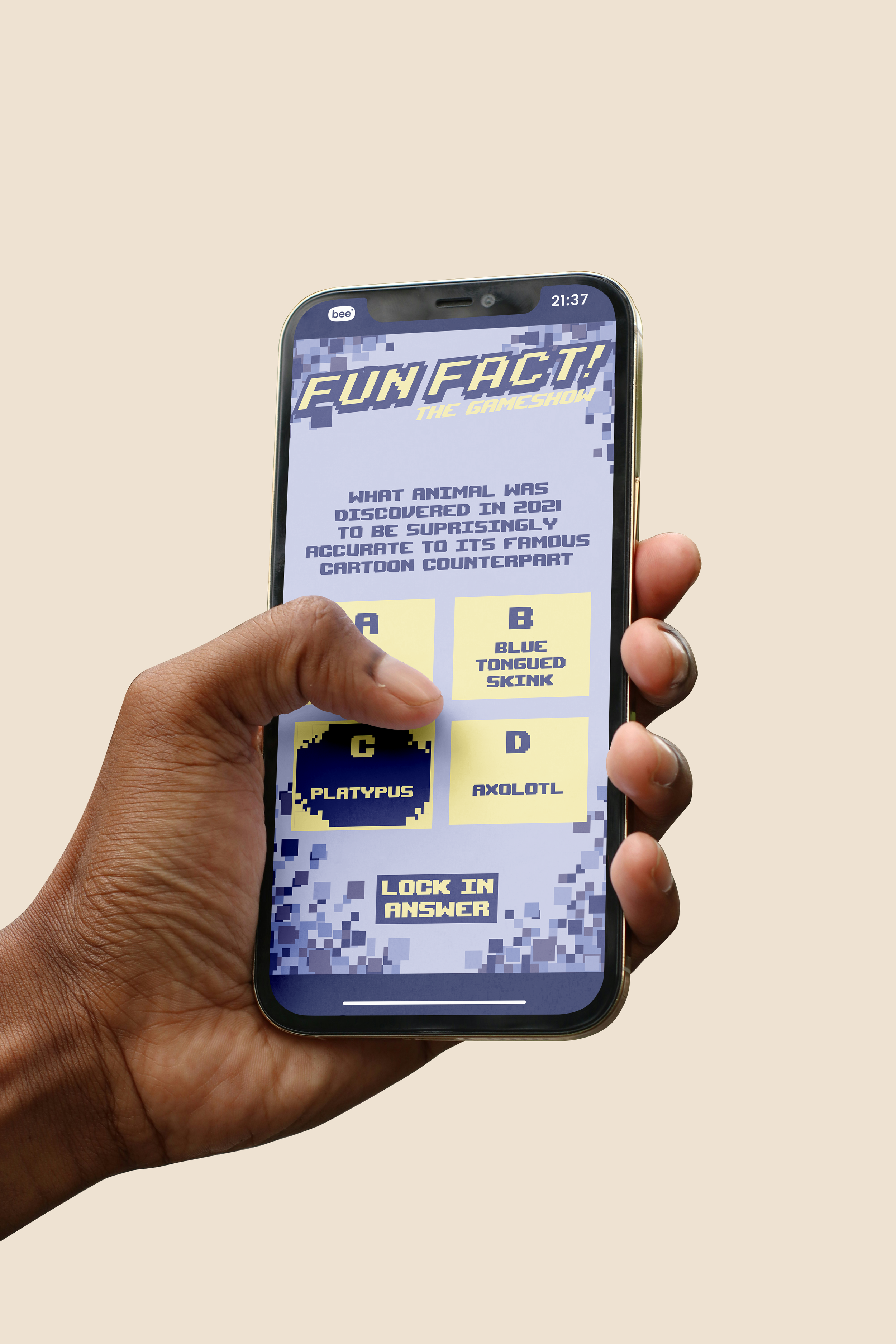 This project was making a logo, screen design, and a design for screens so people could play at home for the gameshow version of Fun Fact!